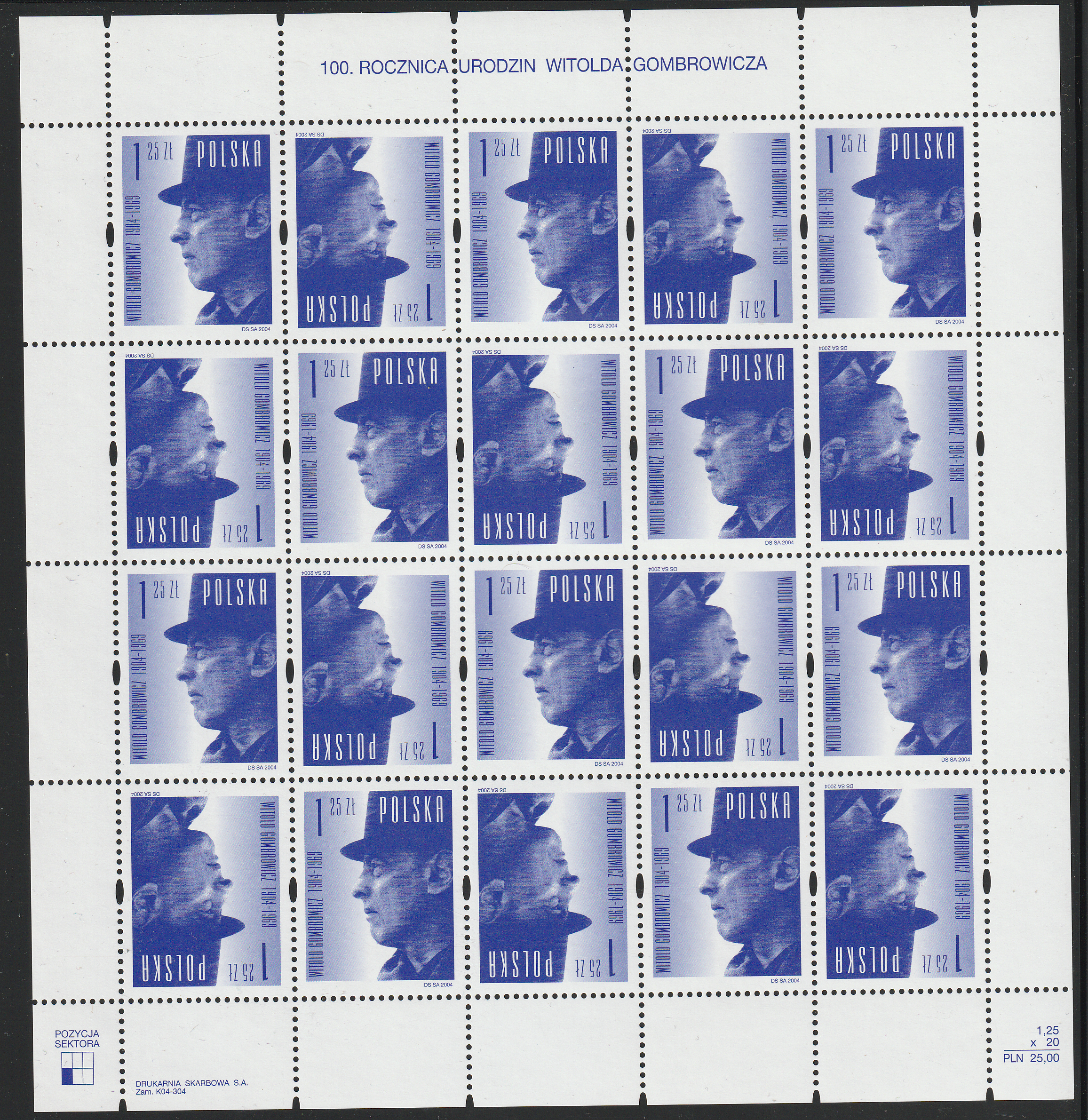 Fi. 3980 - 100. rocznica urodzin Witolda Gombrowicza - górny margines perforowany