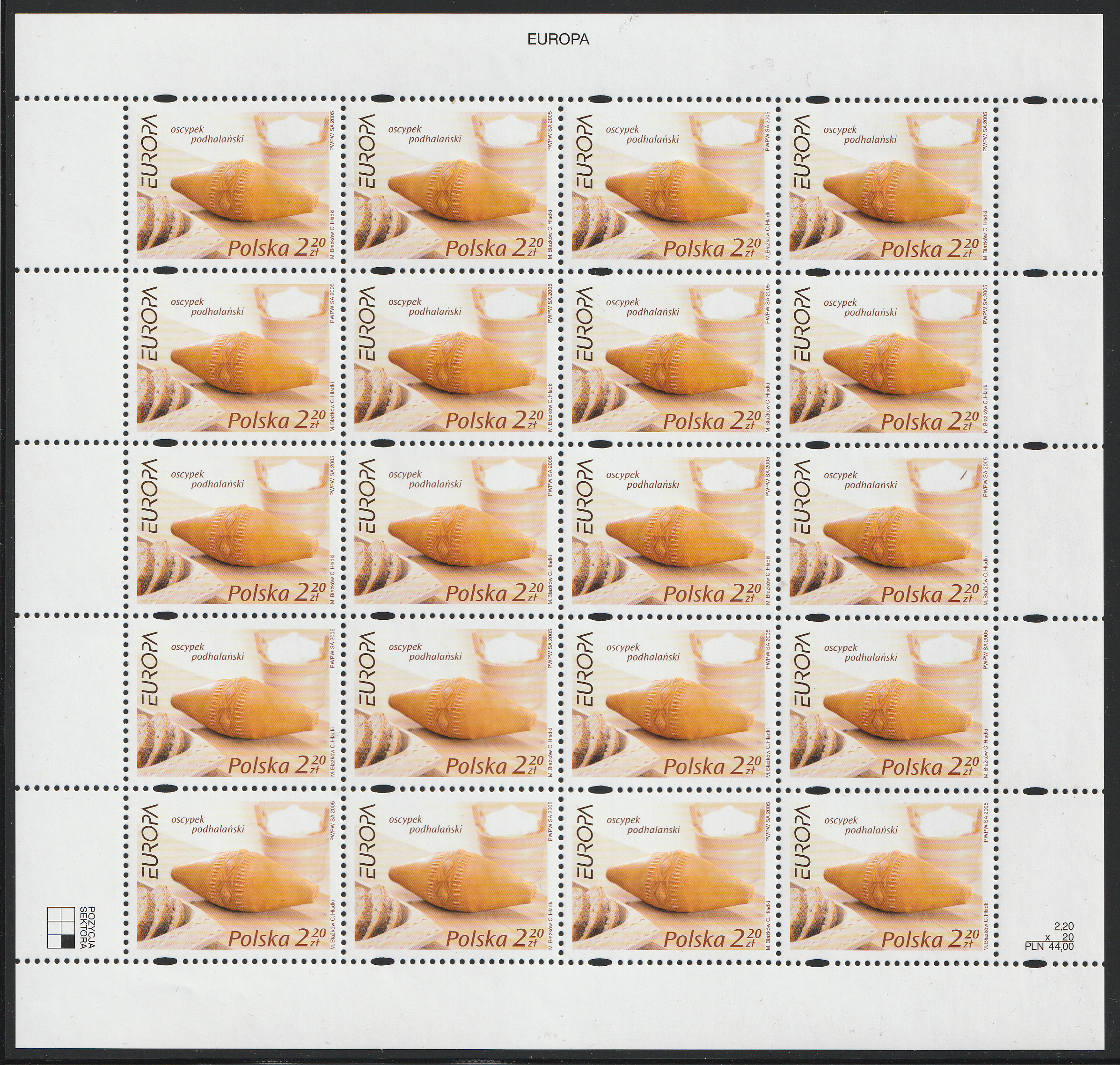 arkusze sprzedażne: po 20 znaczków
